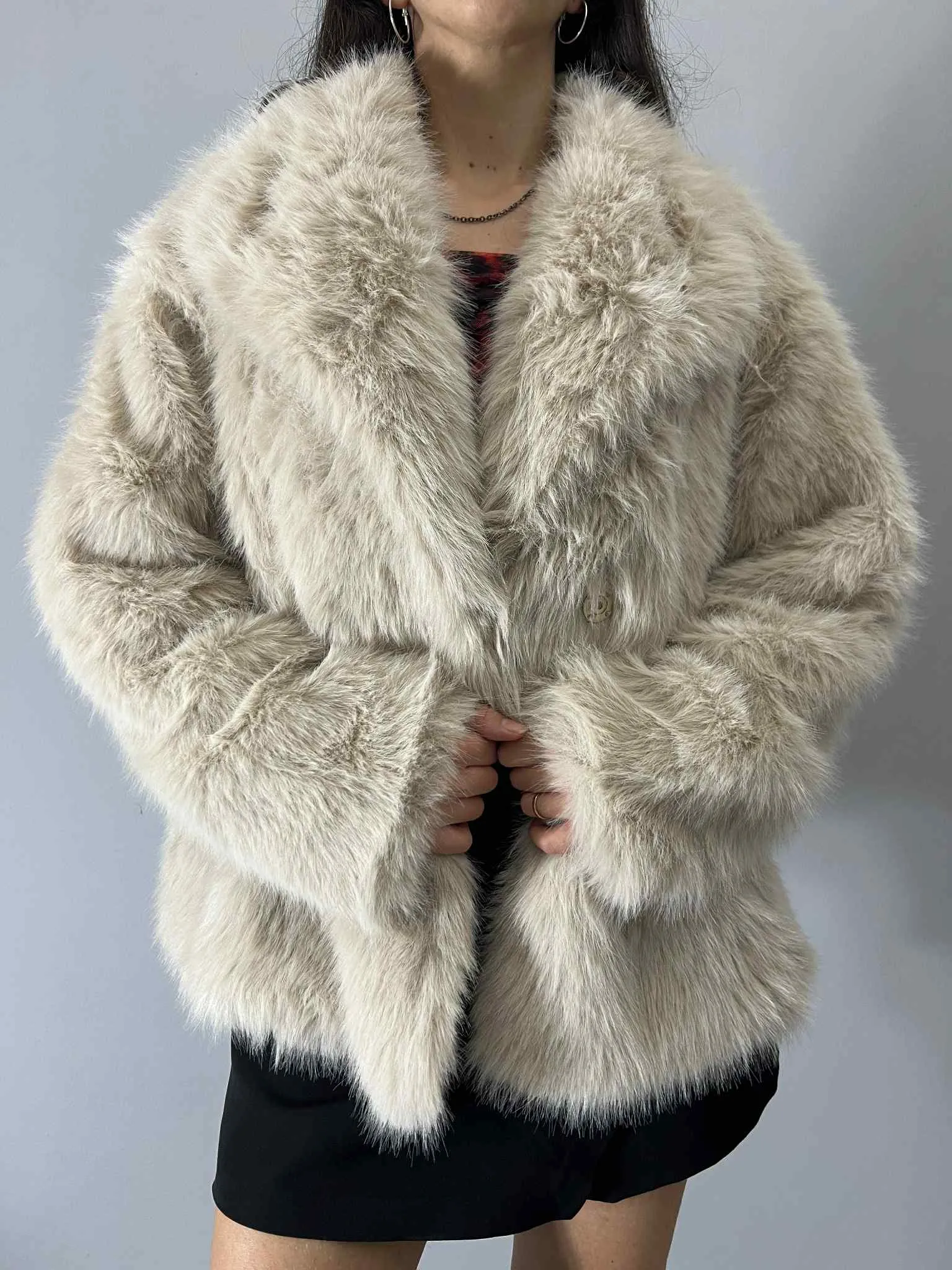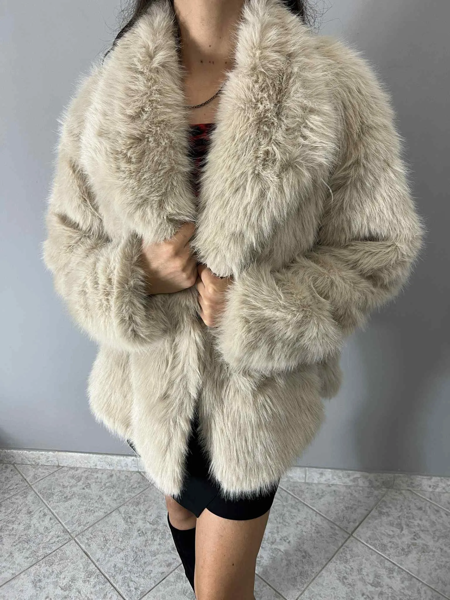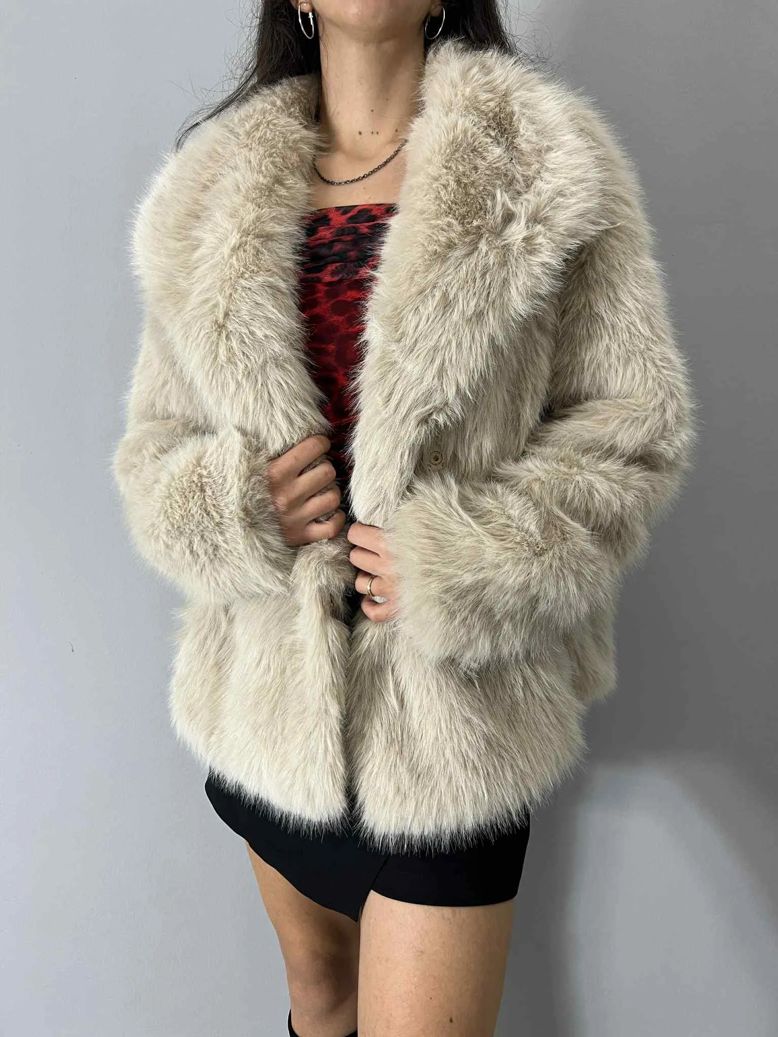 Με αυτή τη μπεζ κοντή γούνα με γιακά, κάθε σου εμφάνιση θα αποπνέει στυλ, άνεση και ανεπιτήδευτη κομψότητα.