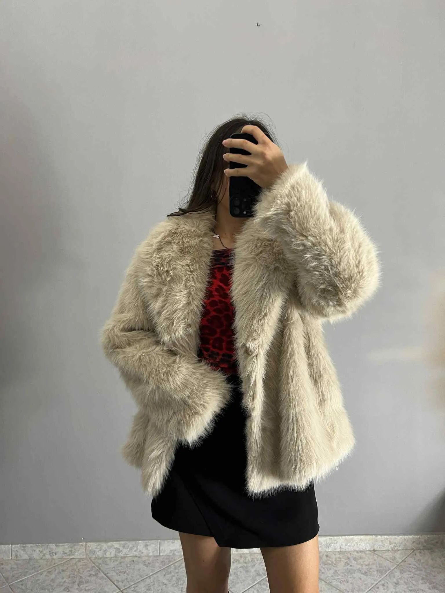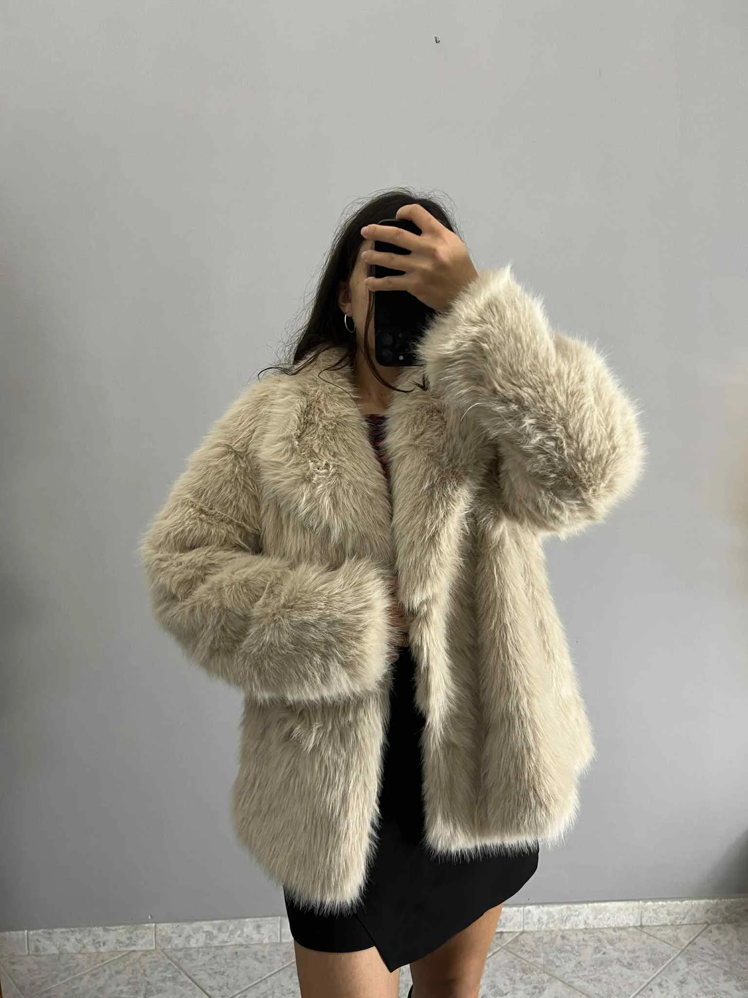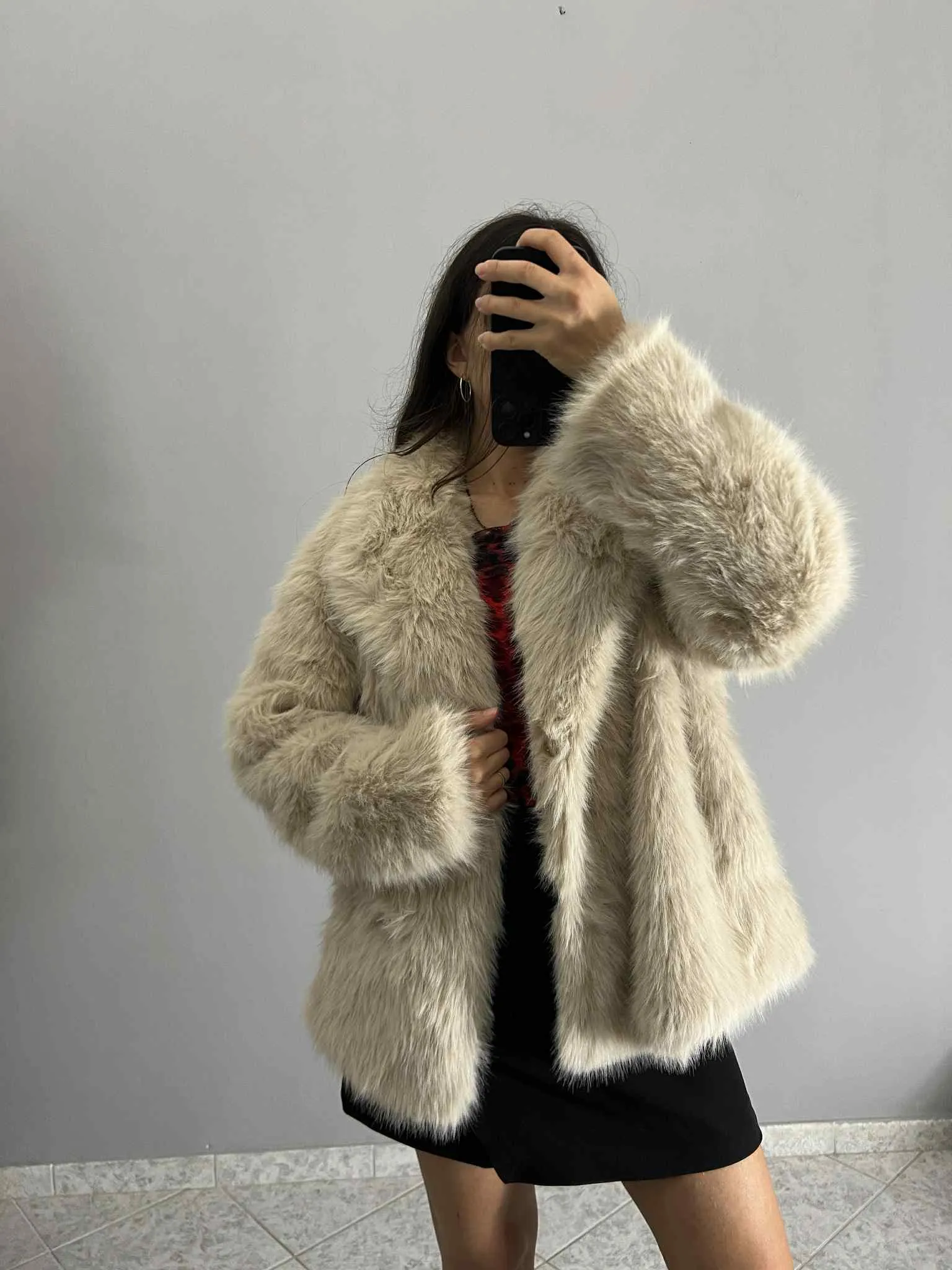 Με αυτή τη μπεζ κοντή γούνα με γιακά, κάθε σου εμφάνιση θα αποπνέει στυλ, άνεση και ανεπιτήδευτη κομψότητα.